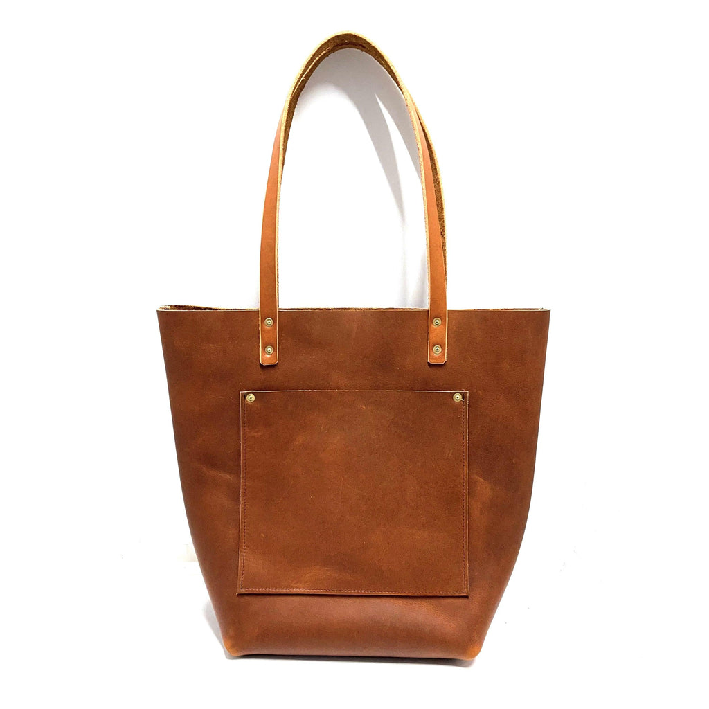 - Premium Oil-Tanned Leather: Made from high-quality, full-grain leather, this tote is both weatherproof and stylish. The leather is sourced from well-established tanneries and is known for its unique character, with natural marks and a patina that develop over time, making your tote truly one of a kind.