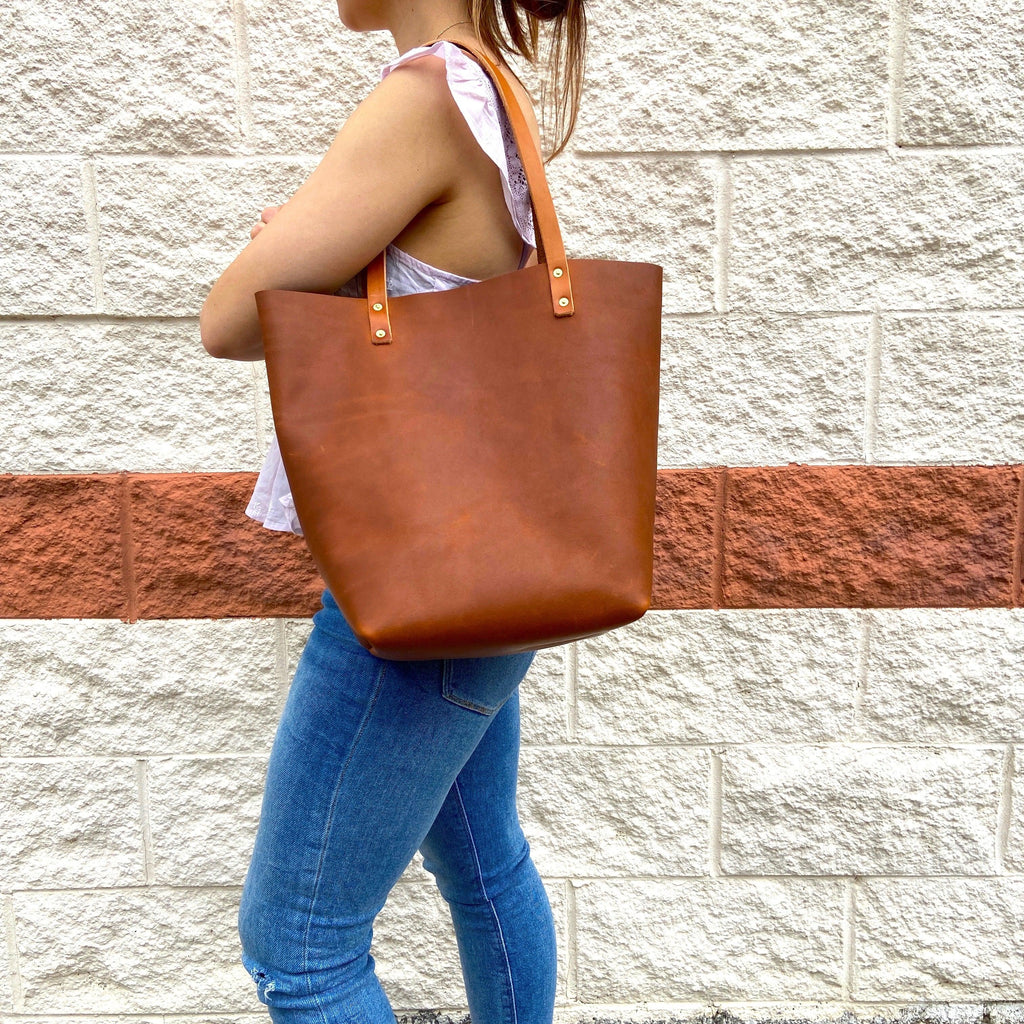 - Spacious and Functional Design: The Urban Tote is slightly larger in size, providing ample room for all your essentials. The design features natural vegetable-tanned handles, solid brass hardware, and copper rivets, ensuring both durability and a touch of elegance.