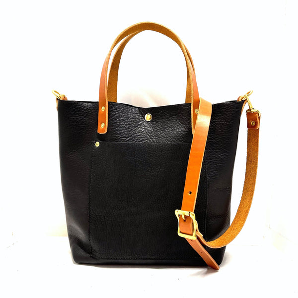 Crossbody Leather Tote Bag in Black
