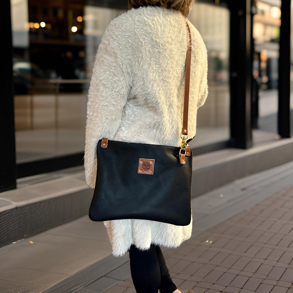 READY TO SHIP: The Leather Messenger in Black - Sleek, Durable, and Handcrafted
