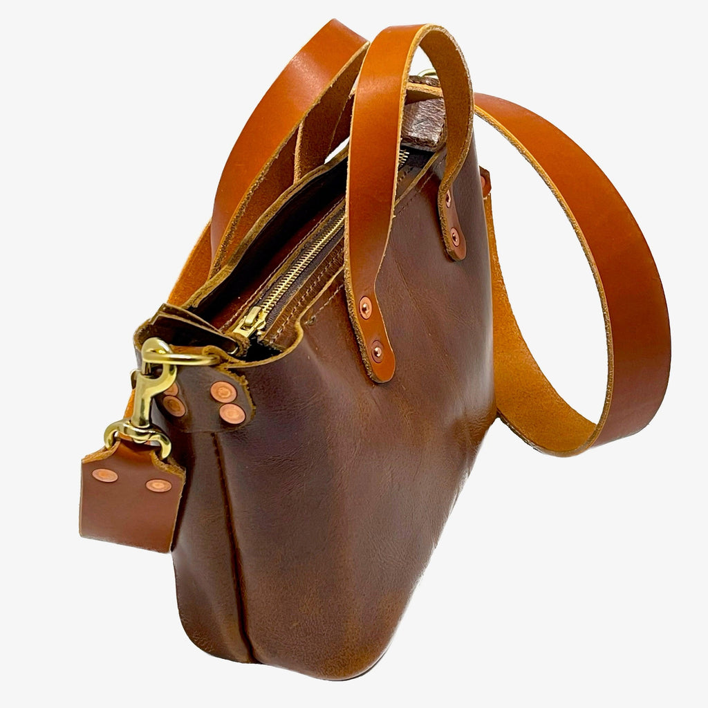 - Versatile Design: The Bella comes with a thick, removable vegetable-tanned leather shoulder/crossbody strap that provides comfort and flexibility. Additionally, the two permanent handles allow you to use it as a handbag. The unique floating drop zipper adds a touch of sophistication while keeping your belongings secure.