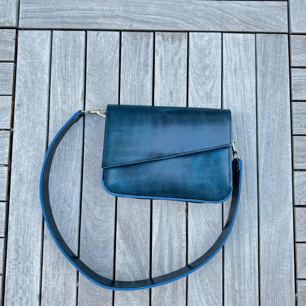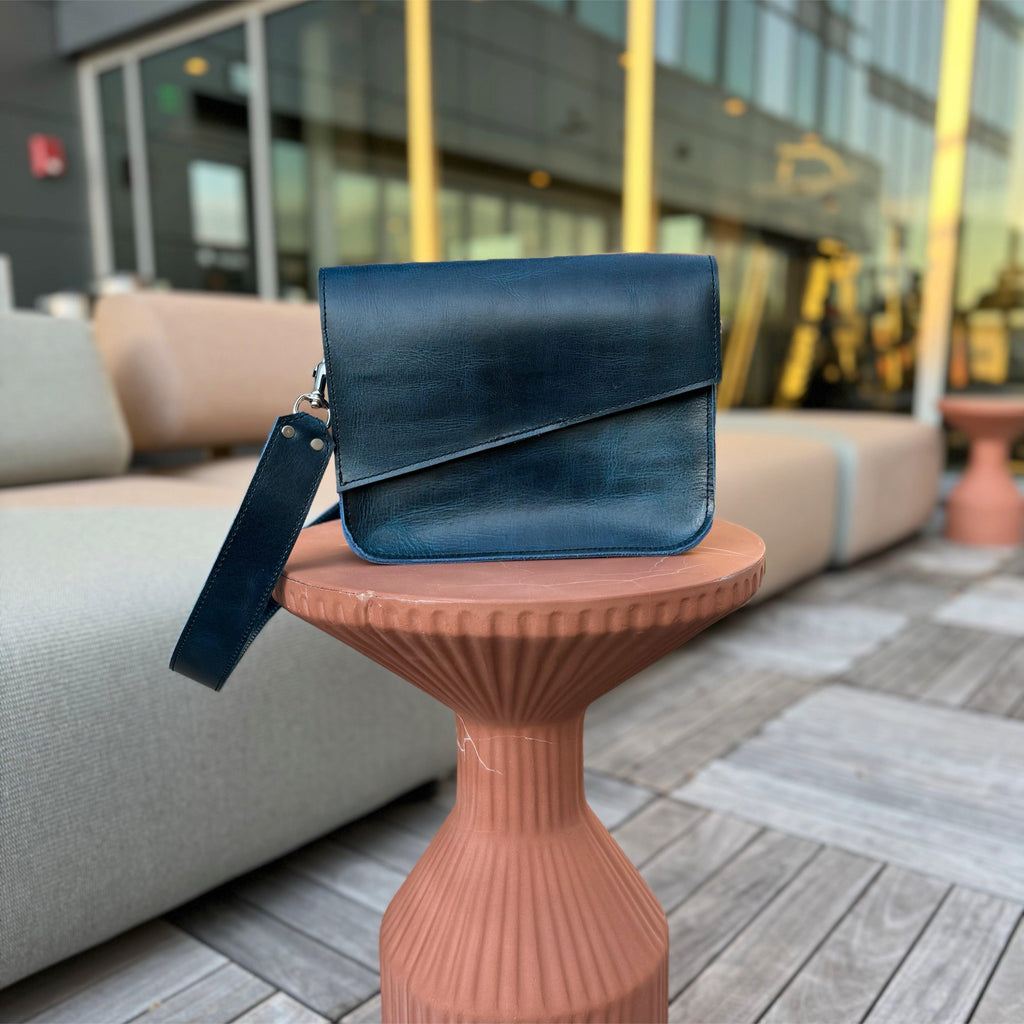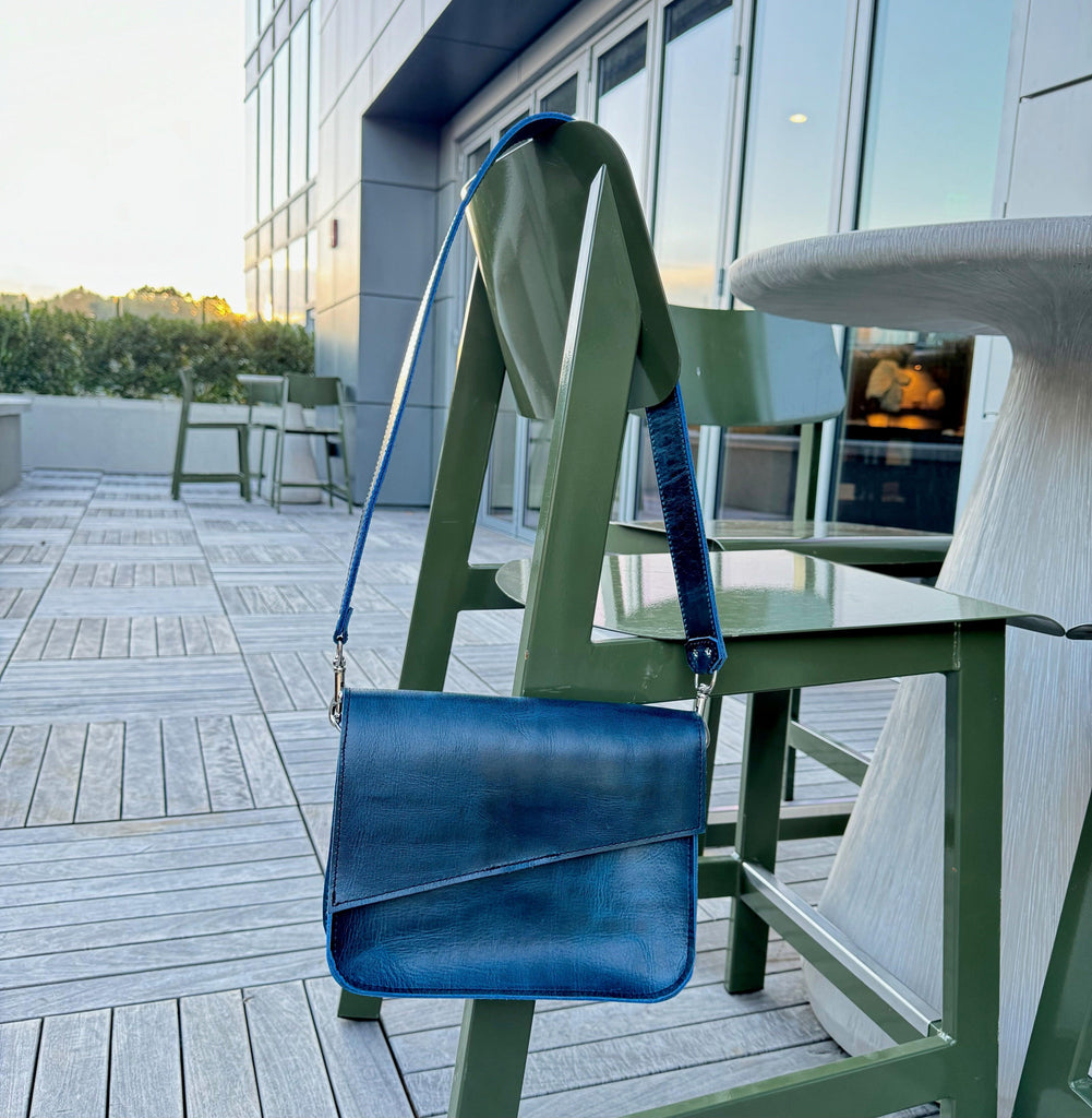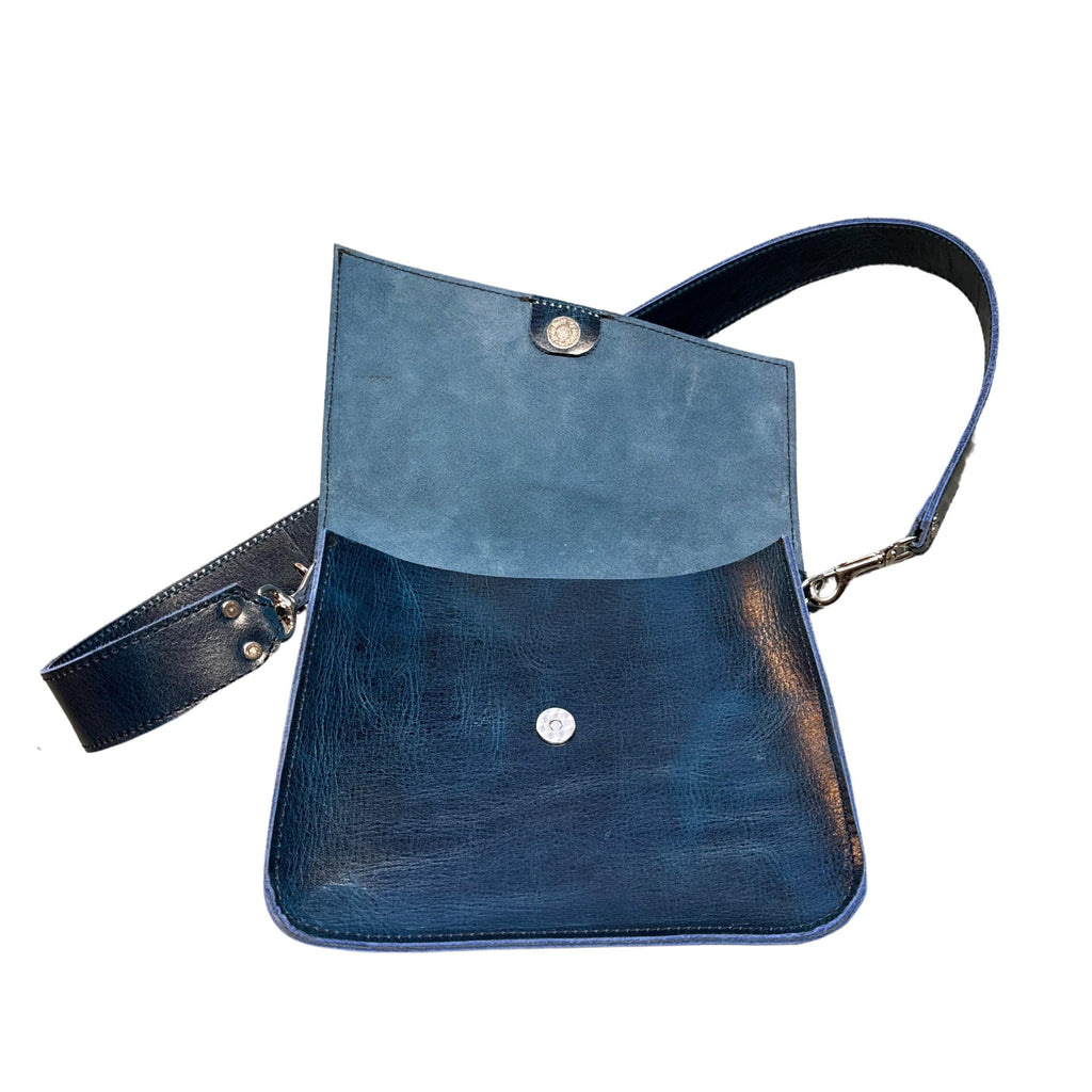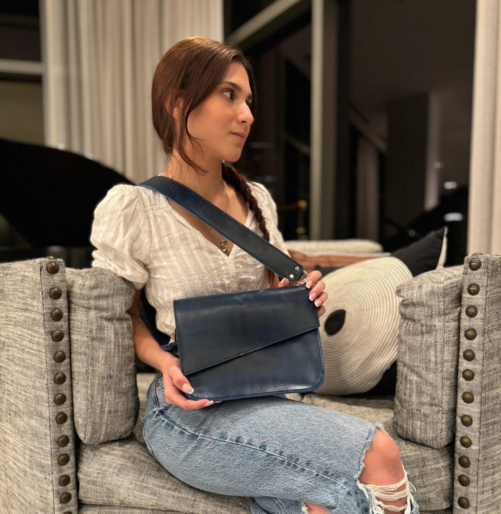 Introducing the Zoe Shoulder Bag—a stunning blend of elegance and functionality. Handcrafted from the finest full-grain leather in a captivating deep blue, this shoulder bag is designed to make a statement. With its unique magnetic enclosure and large flap-over design, the Zoe combines practicality with sophisticated style, making it the perfect companion for any occasion.