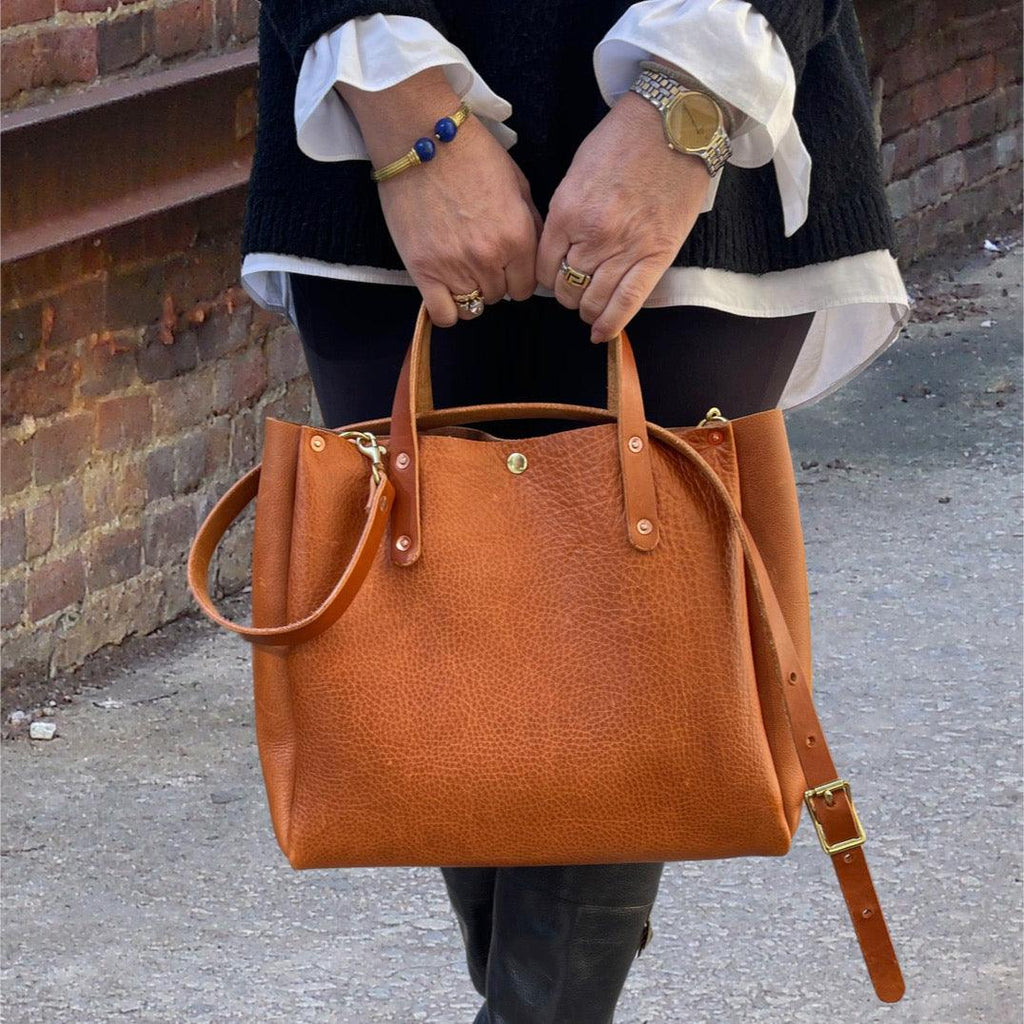 - Versatile Carry Options: In addition to the 5" veg-tanned handle strap drop, The Winston Tote is available with an optional crossbody strap in two lengths, giving you the flexibility to carry it your way.