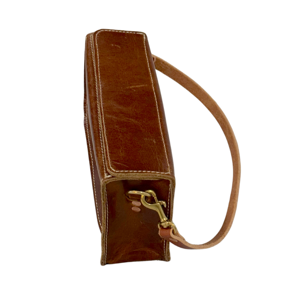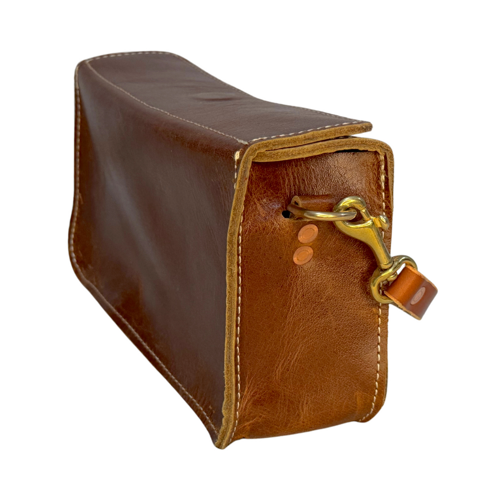 Materials: Glazed full-grain buffalo leather, vegetable-tanned strap, brass hardware
